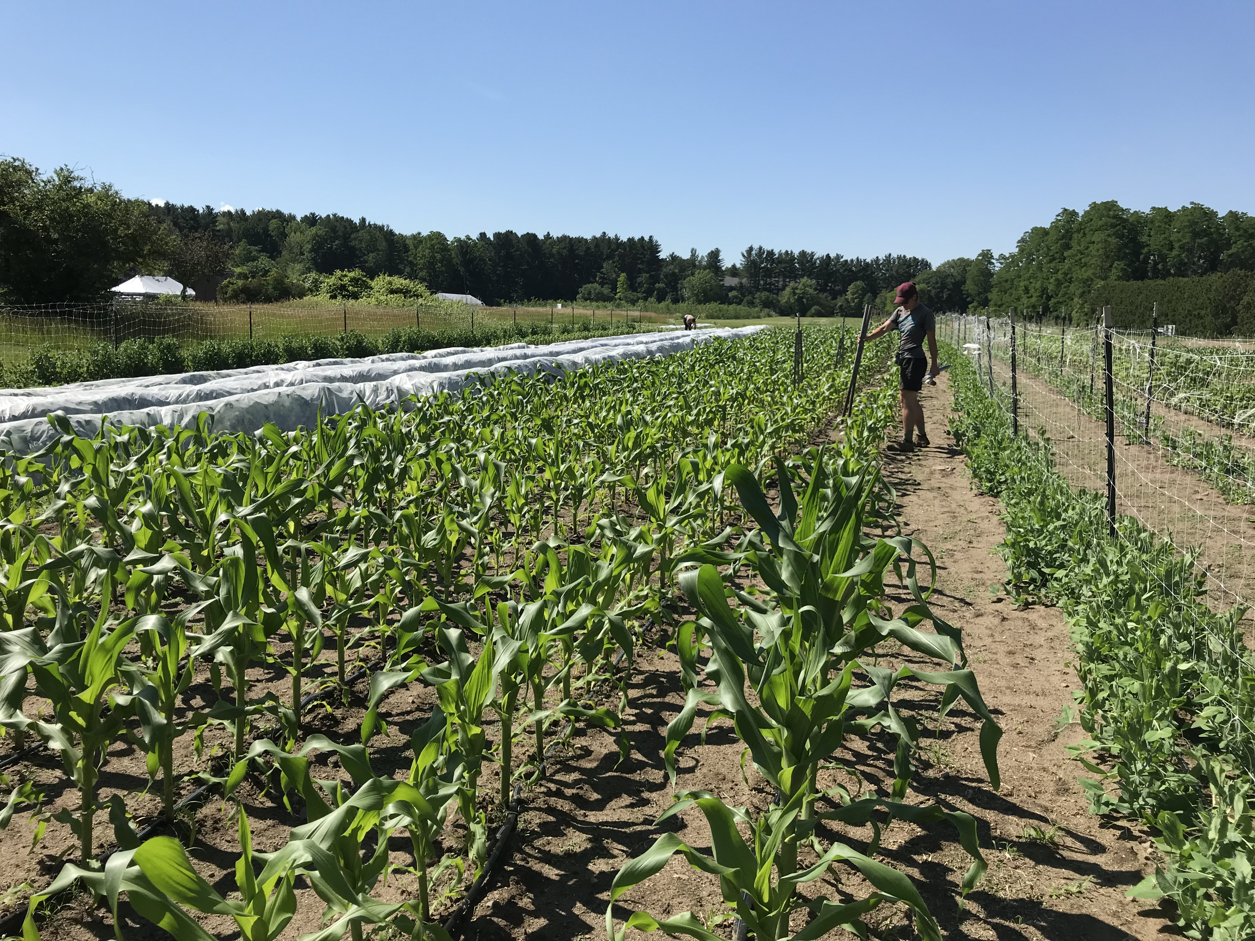 Farmer in sweet corn field in June